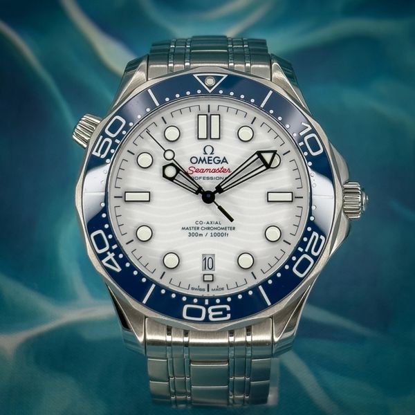 DESCRIPTION: If you’re looking for a precision timepiece, then it doesn’t get any better than the official watch used to keep time for the 2020 Tokyo Olympics. Coming in at 42mm this case has as much versatility as any other SeaMaster line and the contrast of the electric blue bezel and white waved dial creates some serious pop. Top that off with the sleek bracelet and you have a stellar addition to your collection.